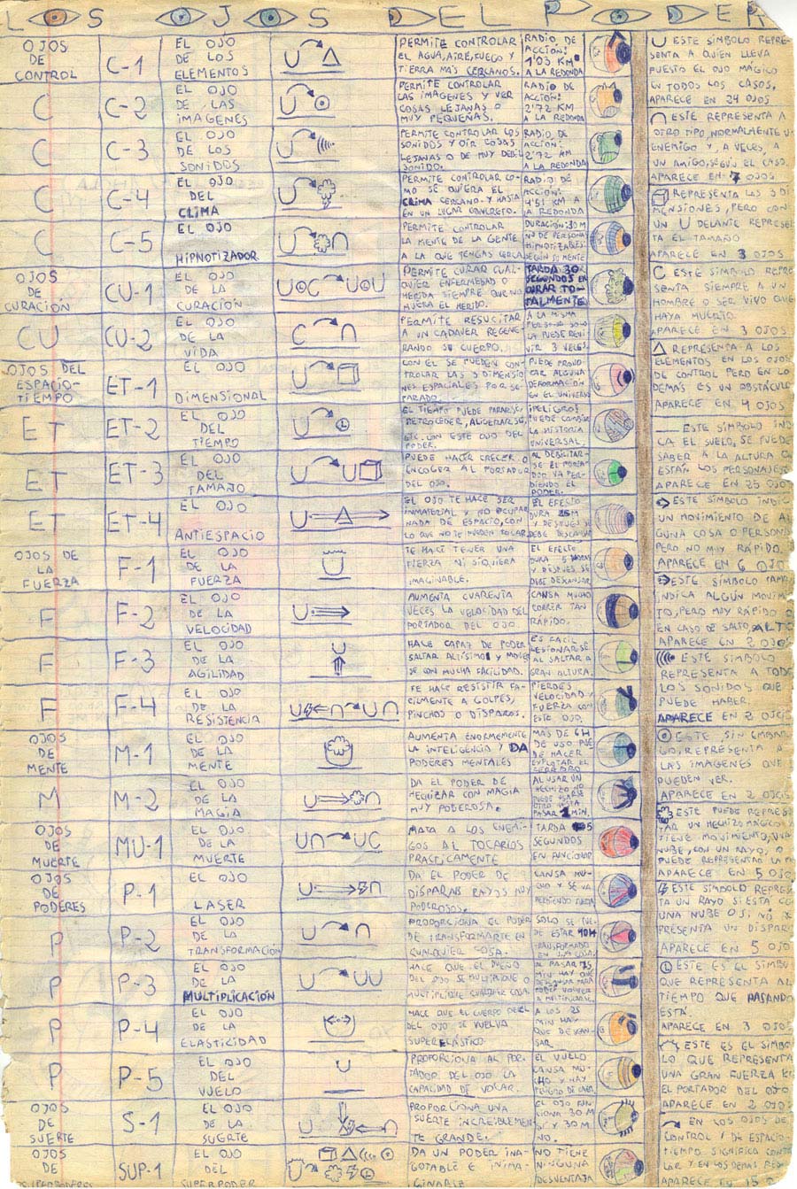 Tabla explicativa de los Ojos del Poder existentes, con símbolos extraños y otras hierbas. Todo muy neeeerd. |