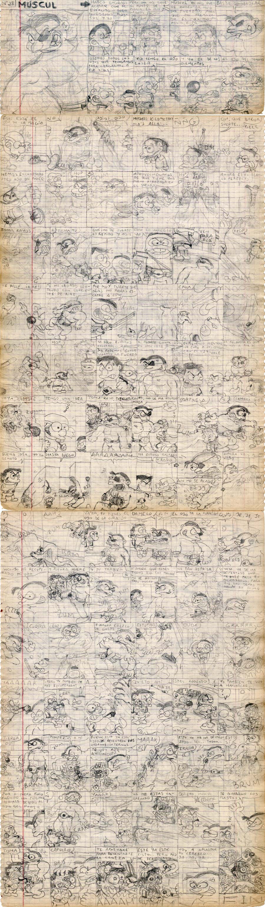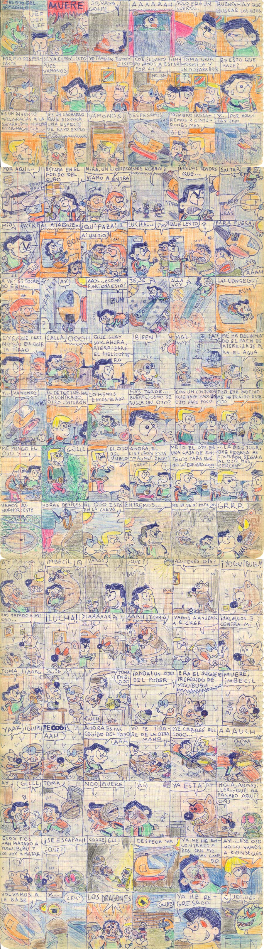 Se acabó el coloreado, ahora sólo a boli. Los héroes van matando gente por ahí. |