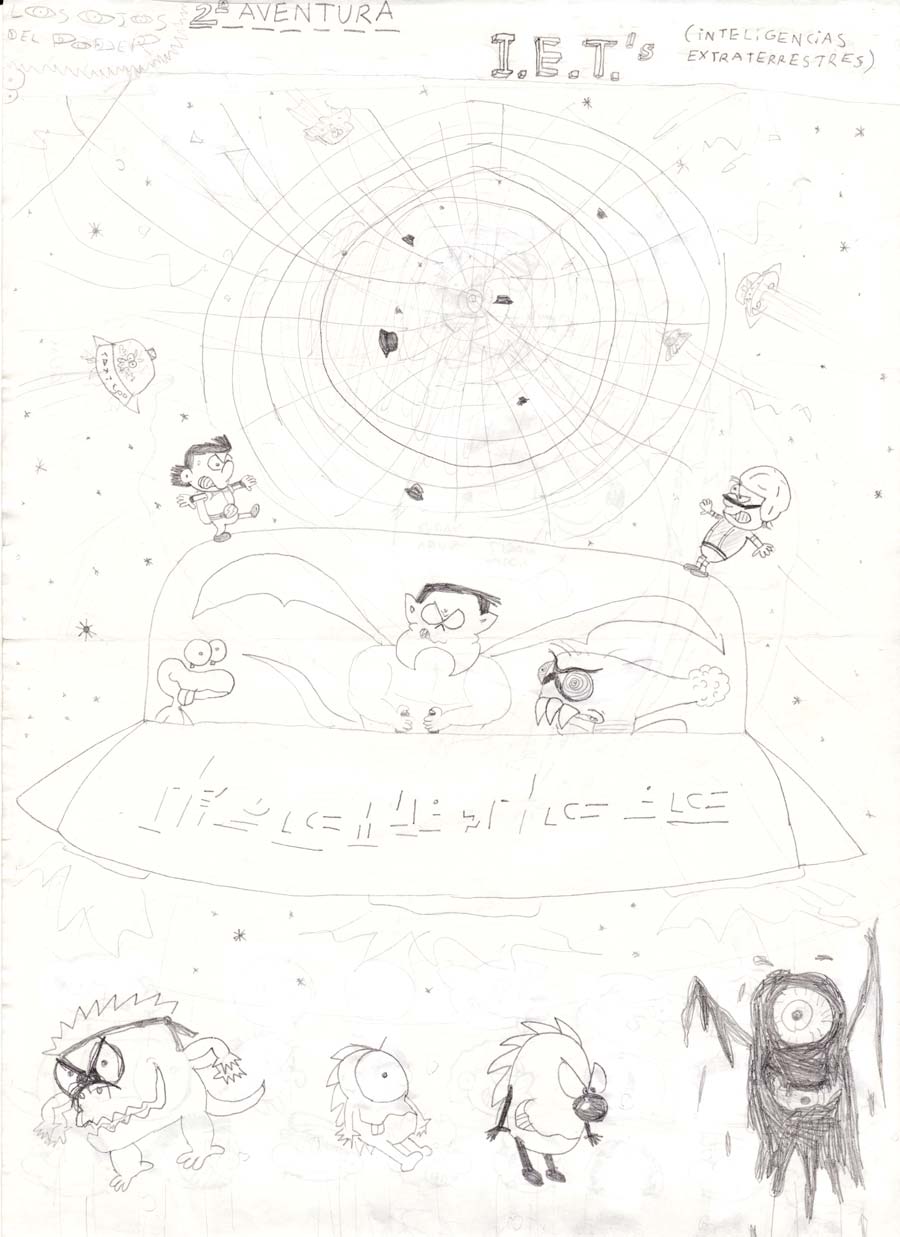 Inteligencias extraterrestres: 02 03 04 05 Mientras los protas luchaban con Rígol (el misterioso tipo del casco que se asomó un par de veces en la primera historia) y sus Buscadores de Ojos, resulta que un grupo de extraterrestres llega a la Tierra con malas intenciones. Y se lían a tortas. El jefe de los extraterrestres, Trúler, iba a conseguir el ojo dimensional (con el que puede controlar las dimensiones) en la batalla final, y aún así iba a perder porque no tiene el poder del guionista. Tras eso, Rígol pasaría a ser como de los buenos aunque iría en plan independiente.