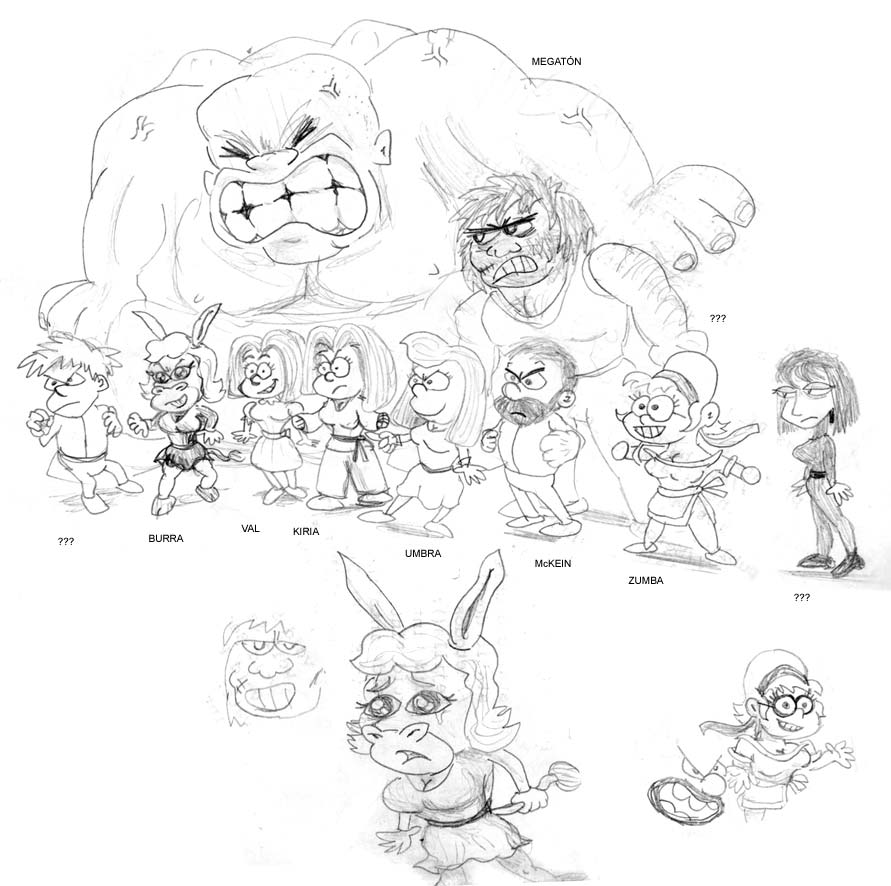 ¿Parece que el cómic se corta cuando le quedaba poco para acabar? Pues no, en realidad estaba empezando. xD Aquí bocetos y dibujos de las futuras tramas que aguardaban y jamás hice:
