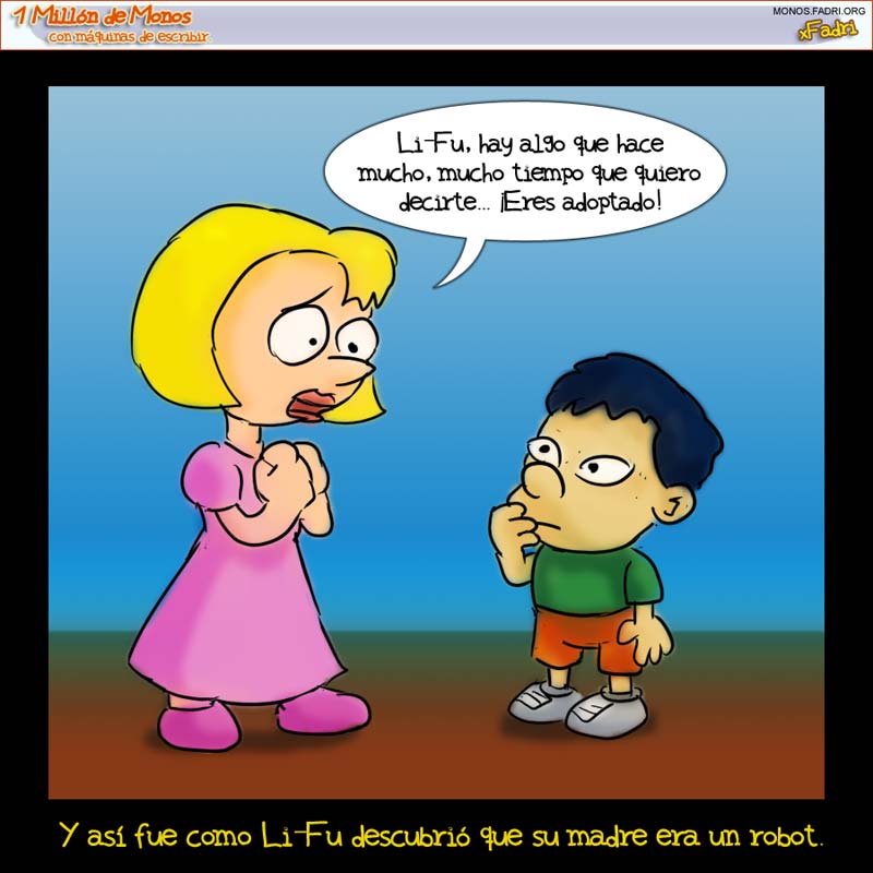 ¡¡Y más fanarts de otros WEEs todavÃa!! :P Esta vez tenemos doble ración: Por un lado, Rafanás de Gamerzs, uno de los pocos webcómics sobre videojuegos en español (en contra de en inglés que hay chorromil y la madre), se ha llevado este dibujo-chorrada de la musa Sonya. XD Y por otro lado, para Laurielle y Morán, que son unos impresentables (o sea, es bueno, que no necesitan presentación es lo que quiero decir :P) y que hacen El Vosque, se han llevado este dibujo de Calderilla sacando ojos, y tal. xD Y ya está. :] 2009-09-16 00:00:00 Willy Galleta 8D 2009-09-16 21:22:37 John Wheel Y sin embargo resulta inesperado. Y los dibujos de Sonya y Calderilla molan. 2009-09-16 21:40:58 Ozanúnest A esto nos lleva el liberalismo cuando se confunde con libertinaje. XDDDD 2009-09-16 22:51:29 NekoPau Pues...un robot? Mira que fue inesperado... 2009-09-16 23:21:58 Zelgadis1983 Joder este si que es buenooooO XDDDDDDDDD 2009-09-16 23:39:26 Deprisa Adoro los finales sorpresa ;) Un saludo Deprisa http://deprisa-deprisa.blogspot.com/ 2009-09-16 23:42:28 Draug Lo mejor es que no me lo esperaba. Incluso Geese Howard dirÃa que esto ha sido UNPREDICTABO. 2009-09-17 00:13:49 Durandal Me has roto por cinco o seis sitios a la vez de un solo golpe XDD 2009-09-17 00:21:32 Rafanás Me he quedao con el culo torcÃo. 2009-09-17 00:36:33 Bonus xDDDD 2009-09-17 01:12:31 Chache ¿Y pa mà no hay fanart? :__( (Ya se que no tengo webcómic, pero por pedir que no quede). 2009-09-17 01:24:37 Draug "Chache, siempre puede hacer un fan-art de tus historias, con Coñan el bárbaro, Giman el héroe depilado, Bárbara la bárbara, Dorimedonte Teodosio el Nano villanos le maten..." Dijo Draug, y le pegaron. 2009-09-17 15:25:16 vinko ZERO Hola Fadri :D. Este es un concurso y si quieres puedes concursar http://minicomicsfregresa.blogspot.com/2009/09/dibuja-tu-deseo.html 2009-09-17 17:42:11 Chache Draug, por Crom ¡para eso tendrÃa que leérselas! Y no le deseo eso ni a mi peor enemigo. O_o 2009-09-17 17:53:34 Deed ¡mi querer fanart! ¡o mi no dibujar más tetas en otakuarts! (chantaje efectico, eh?? eh?? EHHHH???? XD) 2009-09-18 11:33:08 MidouCloud El otro dÃa vi a los monos en un viejo capitulo de los Simpsoms XD 2009-09-19 14:34:25 ELSEwok Cómo mola ver las tiras de este webcómic en formato impreso en "Cómics 2.0" :P 2009-09-20 18:30:55 Fadri ¡Yo todavÃa no lo he visto! >.< 2009-09-20 21:22:01 CARTONS HAHAHAHA· NO MSMS SHEDA PECA (: 2009-09-21 02:37:01 kellendros genial, esto me recuerda a inteligentcia artifical, solo que probablemente hacerlos en china salga mas barato 2009-09-21 12:18:00 ELSEwok Pues no lo habrás visto tú, pero mis compañeros del Instituto ya han visto la tira de "los cuartos" xDD 2009-09-21 17:55:09 |