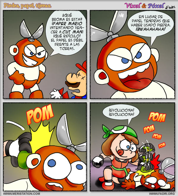 John Wheel Me encanta la chica psicópata matando a pedradas ^^ 2010-03-16 22:47:20 Fénix Éste me ha pillado desprevenido después de leer el anterior xDDDDDDDDDDDDD 2010-03-16 22:48:17 FurnyG ¡Pero evoluciona! 2010-03-16 22:48:33 black may mola xD 2010-03-16 22:48:49 kofmaster @black No es May es Saphire D: 2010-03-17 00:04:15 Draug Vale, esta chica no necesitaba el Strong Arm de Gutsman para vencer a Cutman... una piedra trueno y va sobrada. xD 2010-03-17 00:11:24 Arcangel Gabriel no subestimen esas rocas, son el arma definitiva xD 2010-03-17 01:06:58 L-I Pobre Eevee de la viñeta anterior, no lo ha conseguido snif maldito bicho estúpido y cursi D: 2010-03-17 01:30:40 Purusam Lo mejor es ver las dos tiras juntas. Asi tiene mucha mas gracia, jaja. 2010-03-17 16:34:47 Luis Jajaja, esta es la secuela perfecta para: "asi lo explico Darwin"(o como sea). Excelente, esa si que es una entrenadora malvada. 2010-03-18 01:36:32 Momar ¡Ay, que me lol, y mucho! XD 2010-03-18 13:23:25 Yonn Ahh casi mecaigo de la silla viendo a may matando a cut man a pedradas xD 2010-04-02 01:57:28 @kofmaster May es el nombre de la chica en el anime en latinoamérica. Prime! 2010-05-05 07:25:49 Ferna e__e xDDDDDDDD volvió la chica evolucionadora :D 2010-10-22 17:57:01 ariellens100 y lo sigue intendo ajajjajaja 2010-12-28 23:27:05 evoluciona,evoluciona,evoluciona,evoluciona,evoluciona,evoluciona,evoluciona,evoluciona,evoluciona,evoluciona ...¡PERO EVOLUCIONAAAAA! 2011-05-25 22:52:45 NicolasF Para mi es may me mata de la risa con su "evoluciona"! XD 2012-07-02 21:17:58 |